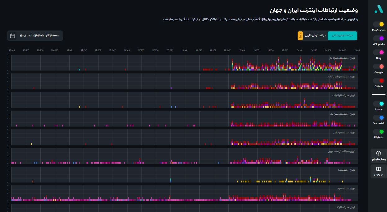 وضعیت پهنای باند اینترنت ایران را در تصویر زیر مشاهده میکنید: