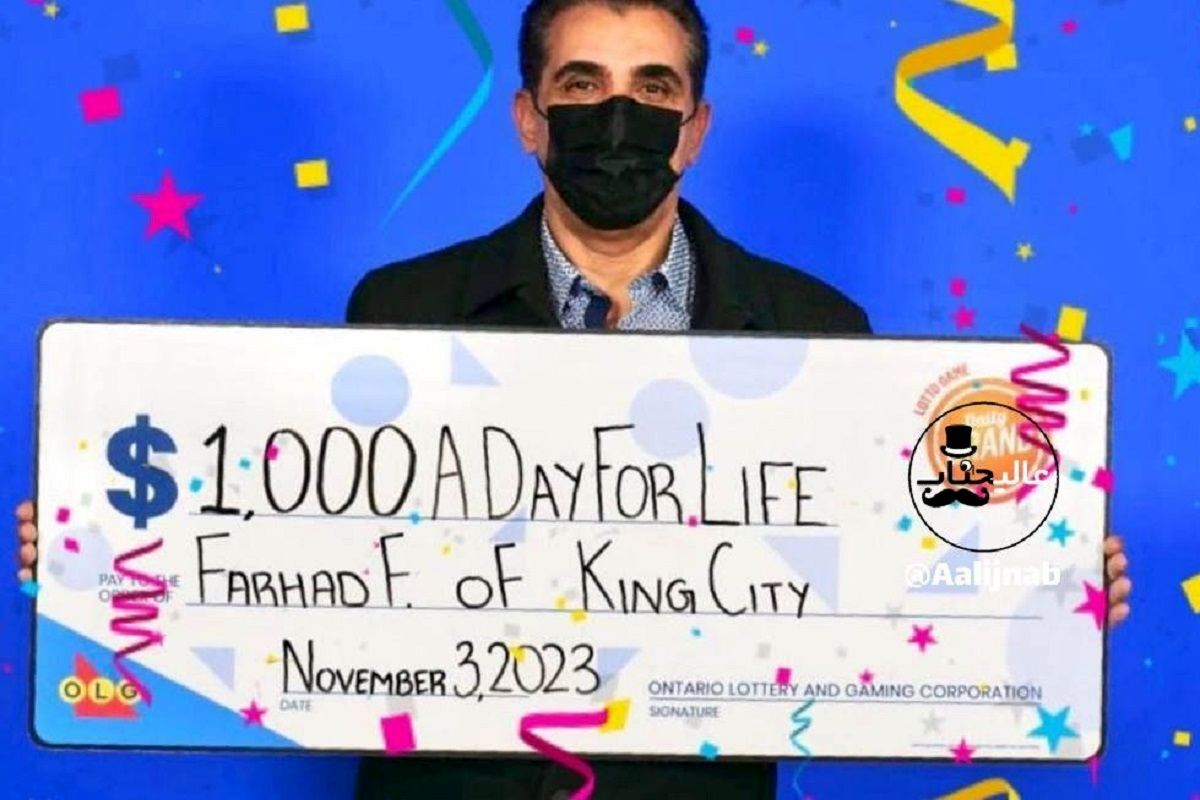 جایزه بزرگ لاتاری کانادا به یک ایرانی خوششانس بهنام فرهاد فرهادیامینه ساکن تورنتو منطقه کینگ سیتی، تعلق گرفت.