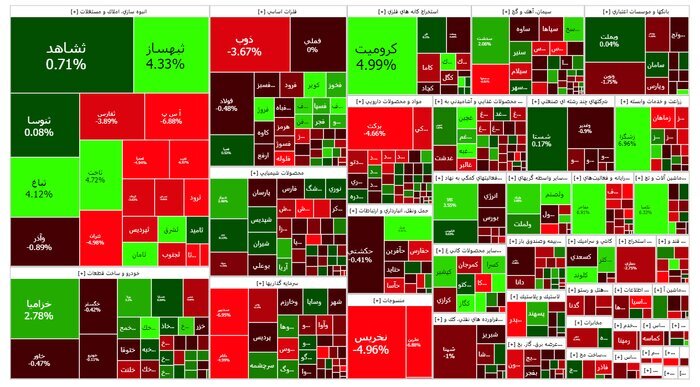 شاخص هم وزن با یک هزار و ۷۸۳ واحد کاهش به ۷۳۸ هزار و ۶۵۴ واحد رسید. نمادهای «فولاد، شپنا، وغدیر، شستا، وبملت، رمپنا و فملی» بیشترین تاثیر را بر شاخص داشتند و همگی باعث افت شاخص شدند.