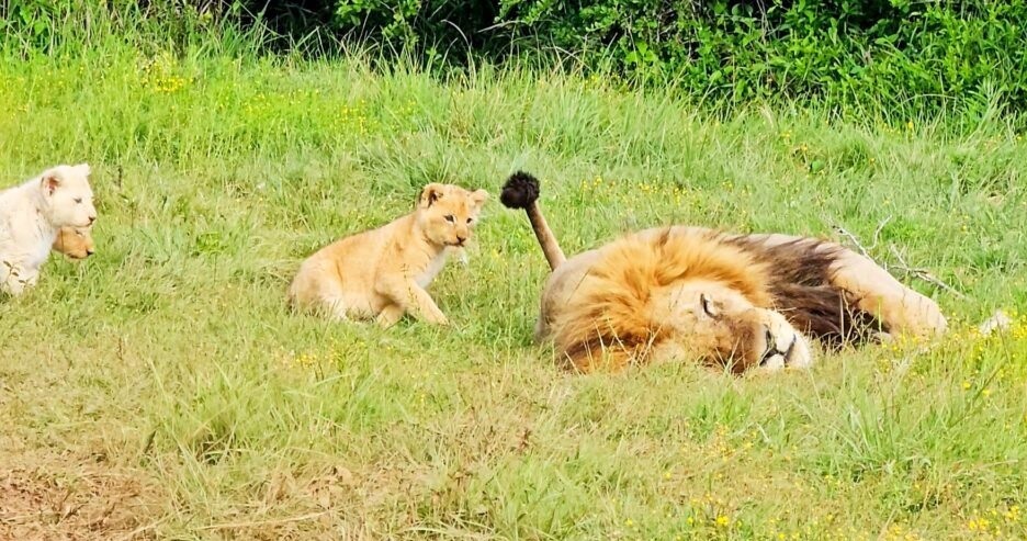 دو توله شیر بازیگوش وقتی سعی کردند از دم پدرشان به عنوان اسباب بازی استفاده کنند، کمی زیاده روی کردند.